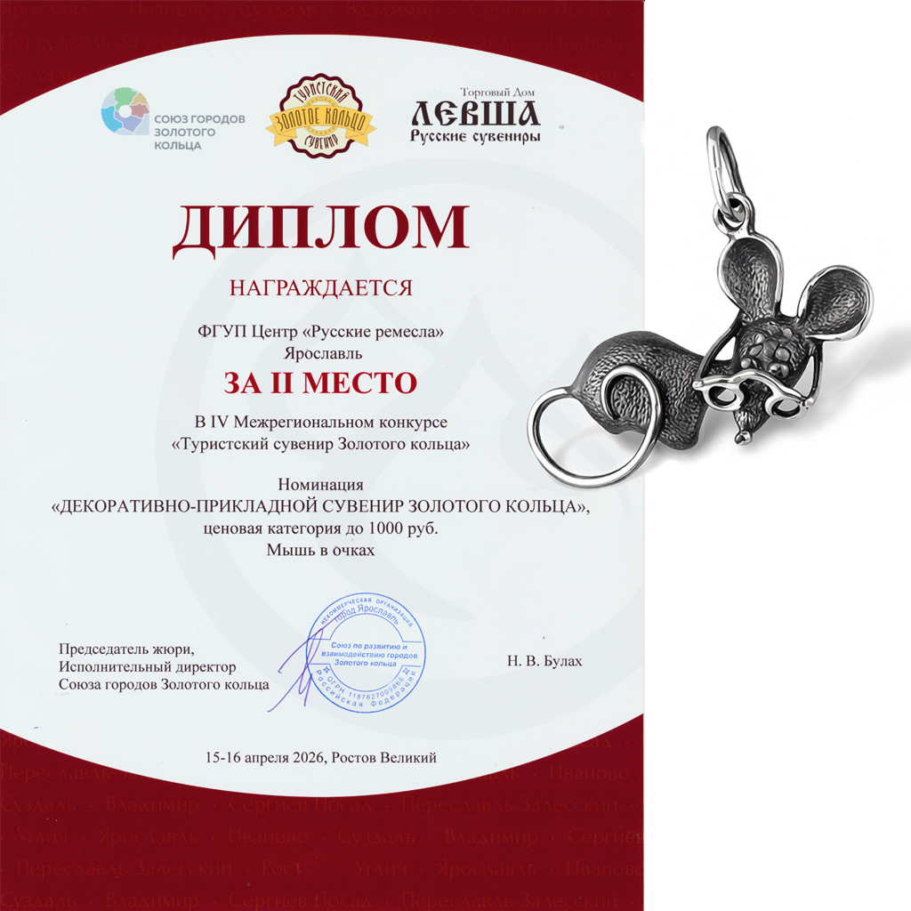 IV Межрегиональный конкурс "Туристический сувенир Золотого кольца" 2026 II МЕСТО Номинация "ДЕКОРАТИВНО-ПРИКЛАДНОЙ СУВЕНИР ЗОЛОТОГО КОЛЬЦА" "Мышь в очках"
