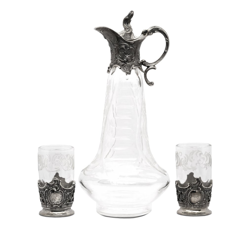 62057 (Q0177-10013), Набор винный "Тет-а-тет": графин и 2 стопки, серебро 925, стекло 171Х76Х76 мм.177,80 гр.